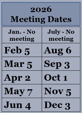 When possible, we try to offer an online viewing option for our monthly meeting speaker presentations. For more information about the next meeting, see the home page.